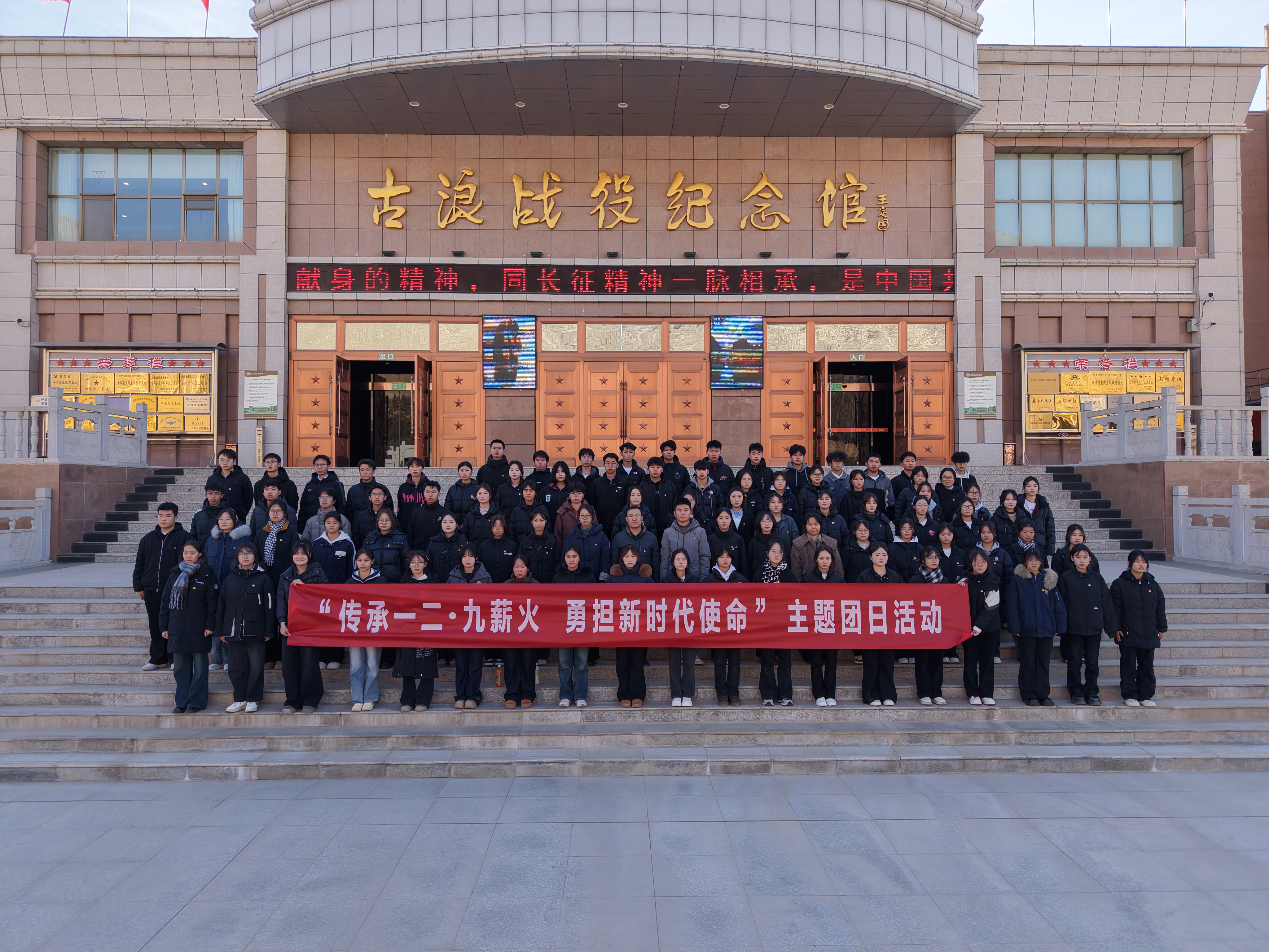 為深切緬懷革命先烈,弘揚愛國主義精神,加強團員青年思想政治引領,12月6日,學校團委在古浪戰(zhàn)役紀念館組織開展紀念“一二 · 九”運動主題團日活動暨新發(fā)展團員集中入團儀式。學校團委全體干部,2025年下半年新發(fā)展團員代表,團學干部代表共計100人參加了活動。