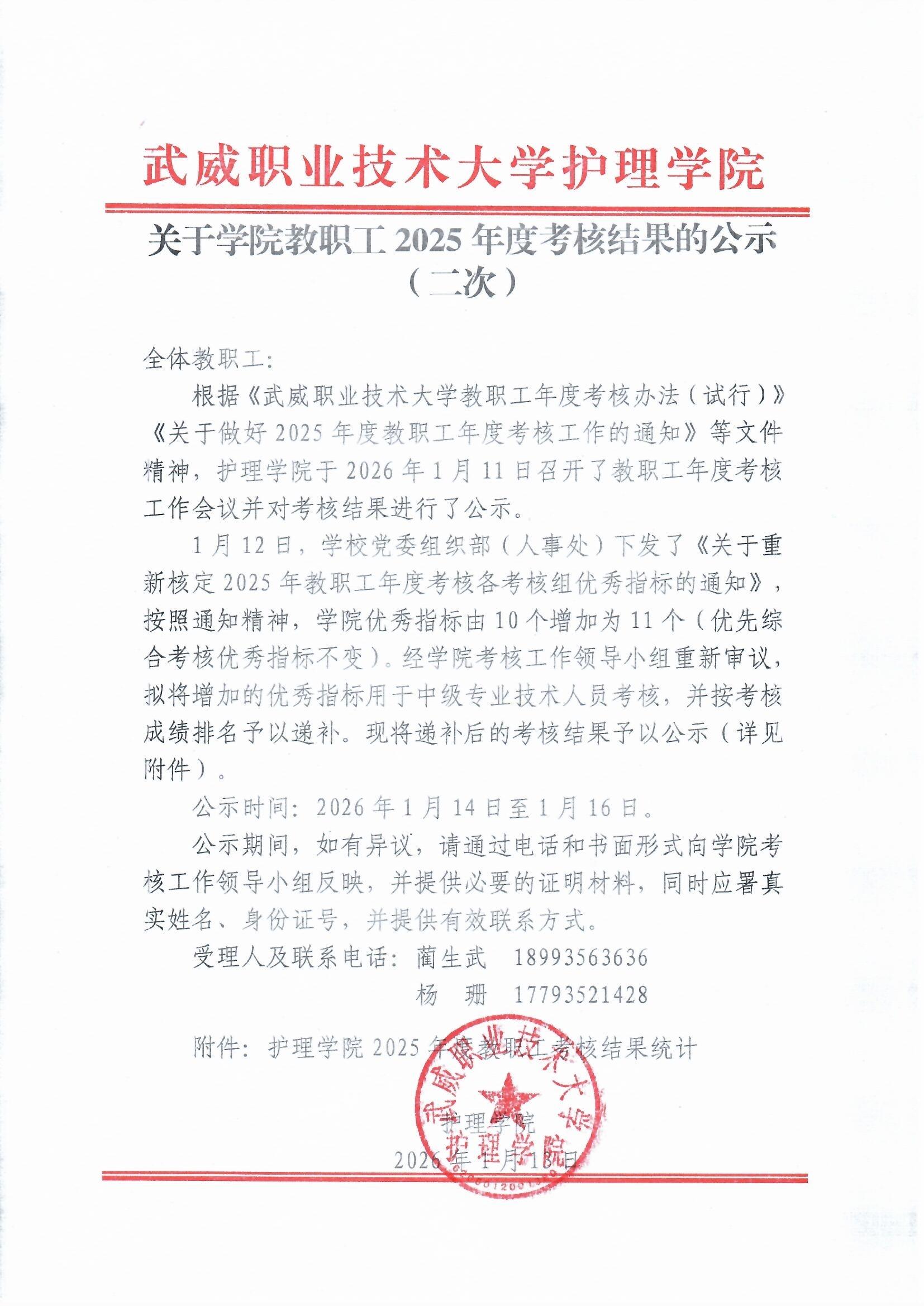 關(guān)于學(xué)院教職工2025年度考核結(jié)果的公示