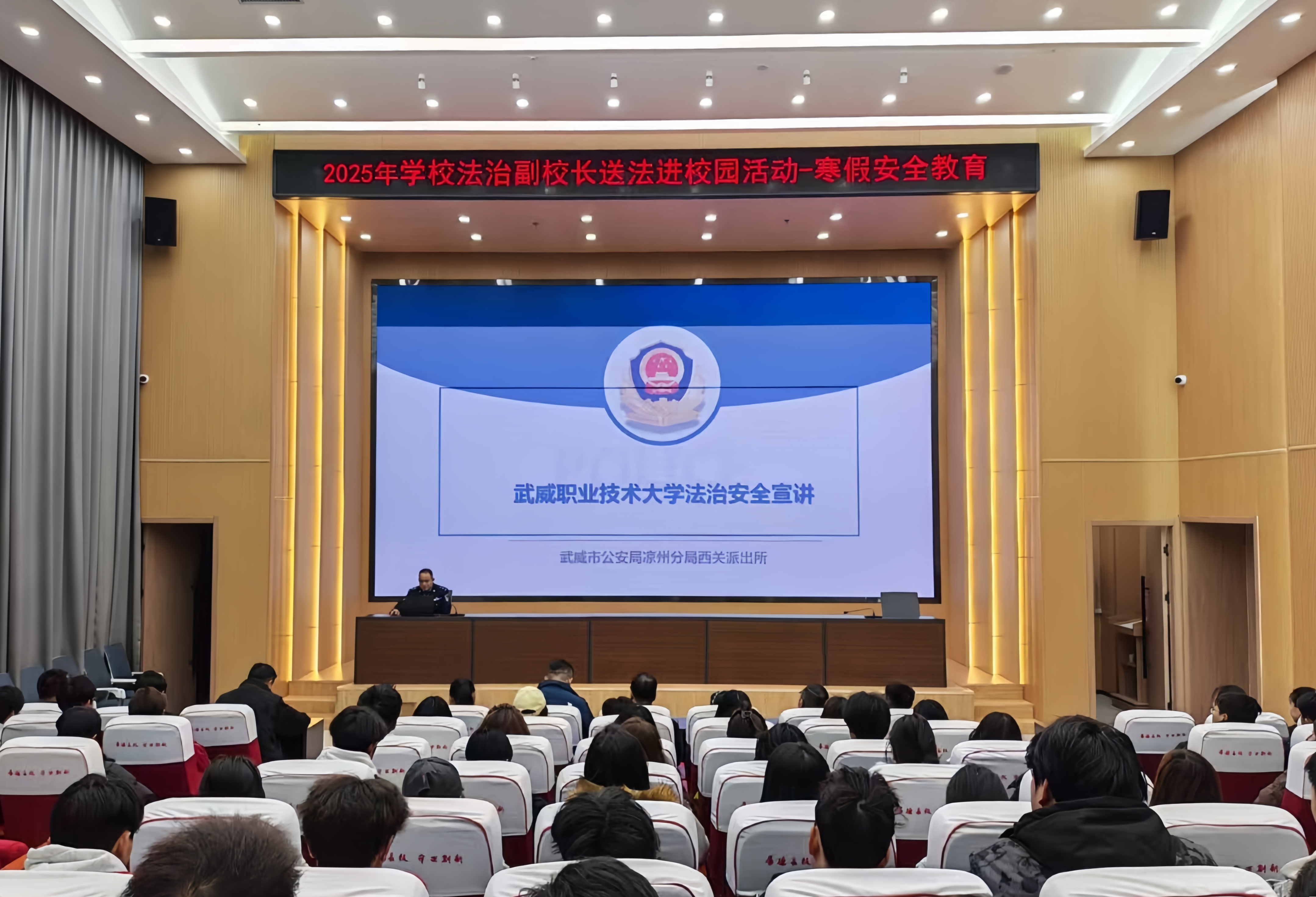 為切實(shí)增強(qiáng)師生法治觀念與安全防范意識(shí),筑牢校園安全防線,12月30日,學(xué)校法治副校長送法進(jìn)校園專題宣講活動(dòng)在能源科技樓一樓學(xué)術(shù)報(bào)告廳舉行,各學(xué)院輔導(dǎo)員及學(xué)生代表共計(jì)110余人參加活動(dòng)。