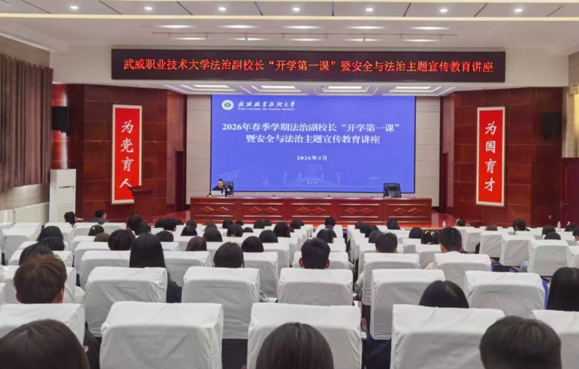 春啟新程,法護成長。3月10日,武威職業(yè)技術大學開展法治副校長“開學第一課”暨安全與法治主題宣講活動,旨在強化師生法治觀念,提升安全防范意識和自我保護能力,筑牢校園安全防線。安全保衛(wèi)處、學生工作部相關負責人,各學院輔導員及學生代表共200余人現(xiàn)場參與活動。